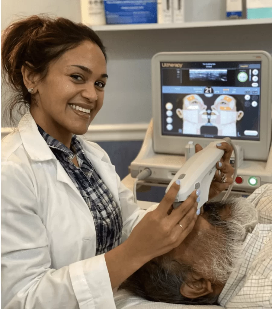 We have a team of medical aesthetic experts with decades of combined experience in Ultherapy®. You never again need to search for ‘Ultherapy® near me’ because we have everything you need all under one roof. Whether you’re looking for face tightening procedure, or if you want to improve your neck, chin, or brow, we have the necessary skills, experience, and technology to give you beautiful, natural-looking results.